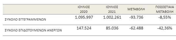 Μείωση των ανέργων που είναι γραμμένοι στα μητρώα του ΟΑΕΔ είχαμε τον Ιούλιο σε σύγκριση με τον περσινο Ιούλιο σύμφωνα με τα στοιχεία που παρουσίασε ο οργανισμός. Ωστόσο υπήρξε μια μικρή αύξηση σε σχέση με τον φετινό Ιούνιο όπως θα δείτε στους ακόλουθους πίνακες