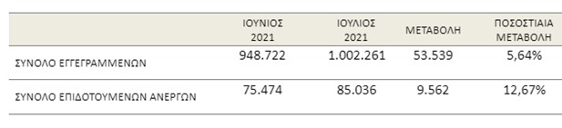 Πάνω από 1 εκ. οι εγγεγραμμένοι άνεργοι τον Ιούλιο