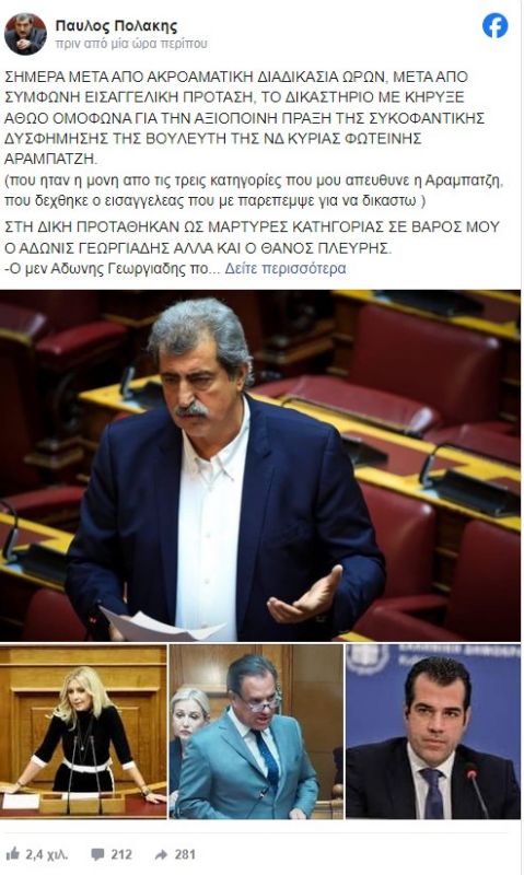 -Ο δε Θάνος Πλεύρης ήρθε και αγωνιωδώς προσπάθησε να πει για συκοφαντία με δόλο που δεν δέχθηκε το δικαστήριο!