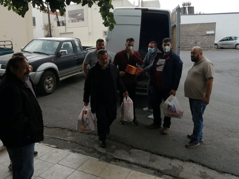 Η αντιπροσωπεία επισκέφτηκε σεισμόπληκτες οικογένειες και έδωσε τρόφιμα και είδη ατομικής υγιεινής σε δημοτικά διαμερίσματα του Δήμου Μινώα Πεδιάδας και του Δήμου Αχαρνών-Αστερουσίων.