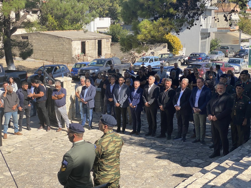 Μετά την Θεία Λειτουργία, στον Ιερό Ναό Τιμίου Σταυρού, τελέστηκε επιμνημόσυνη δέηση στο Ηρώο, πλησίον του Ιερού Ναού Αγίου Κωνσταντίνου, από τον Ηγούμενο της Ιεράς Μονής Κουδουμά, π. Μακάριο Σπυριδάκη και τον Εφημέριο της Ενορίας Μεγάλης Βρύσης, π. Νικόλαο Τσακαλάκη, παρουσία στρατιωτικού αγήματος που απέδωσε τιμές. Στην συνέχεια, σε κλίμα συγκίνησης, πραγματοποιήθηκε κατάθεση στεφάνων στο Ηρώο και ακολούθησε η ανάγνωση του καταλόγου των ονομάτων των πεσόντων και η ανάκρουση του Εθνικού Ύμνου.