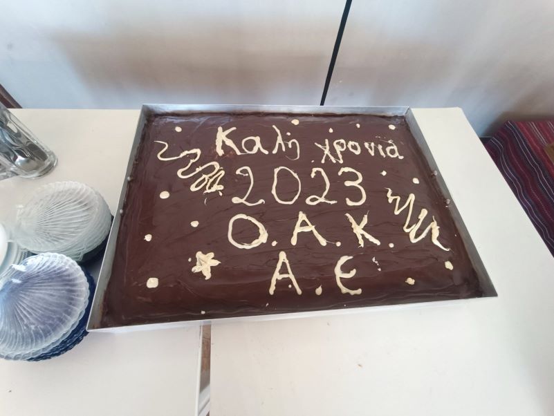 Στο σύντομο χαιρετισμό του, ο νέος Πρόεδρος του Διοικητικού Συμβουλίου του Ο.Α.Κ., κ. Θοδωρής Νίνος, «ευχαρίστησε το προσωπικό του «Οργανισμού» για την προσπάθεια που καταβάλει μέσα σε αυτή την δύσκολη συγκυρία» τονίζοντας παράλληλα πως «ο Ο.Α.Κ. βρίσκεται σε συνεχή ανοδική τροχιά».