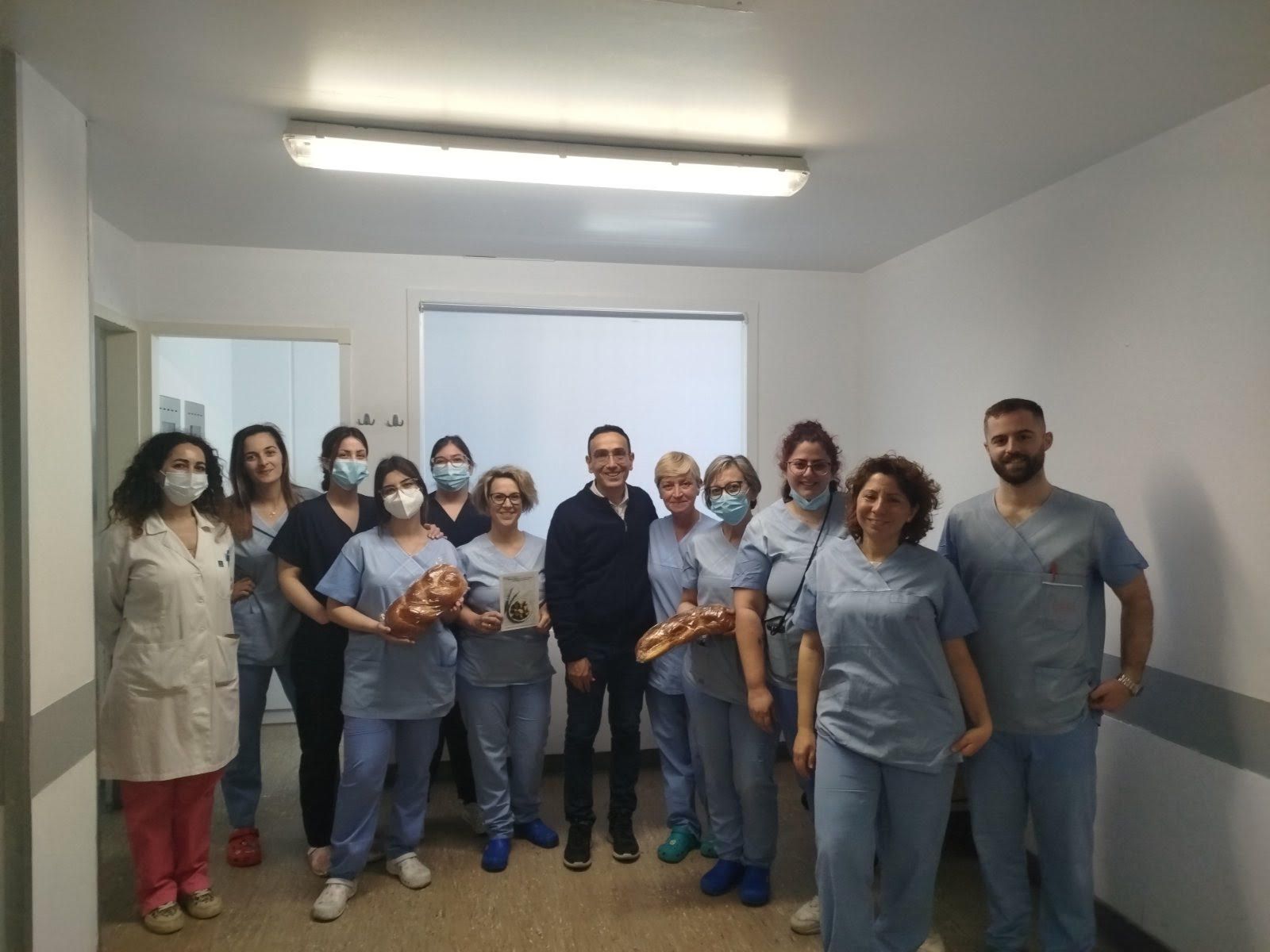 Μέλη της διοίκησης του Σωματείου Εργαζομένων ΠαΓΝΗ, αποτελούμενη από τον Δημήτρη Βρύσαλη πρόεδρο του σωματείου ,Νάνσυ Τζαβάρα μέλος ΔΣ του σωματείου και εκπρόσωπο των εργαζόμενων στο ΔΣ του νοσοκομείου ,την Δέσποινα Παπαγιαννάκη μέλος του σωματείου το Μ. Σάββατο, δώρισαν παραδοσιακά εδέσματα κι ευχετήριες κάρτες και αντάλλαξαν ευχές με τους εργαζόμενους που έχουν βάρδια, μακριά από τις οικογένειες τους, δίνοντας τη μάχη (όπως κάνουν όλο το χρόνο) για την υγεία των συνανθρώπων μας.