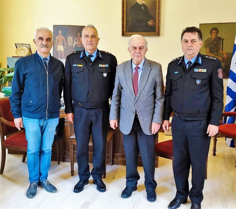 Εθιμοτυπική Συνάντηση με τον Υποστράτηγο του Πυροσβεστικού Σώματος και Συντονιστή Επιχειρήσεων Βορείου, Νοτίου Αιγαίου και Κρήτης Κωνσταντίνο Θεοφιλόπουλο καθώς και τον Αρχιπύραρχο και Γενικό Περιφερειακό Διευθυντή των Πυροσβεστικών Δυνάμεων Κρήτης Γιώργο Τσικαλά είχε το μεσημέρι στο γραφείο του στη Λότζια ο Δήμαρχος Ηρακλείου Βασίλης Λαμπρινός. Παρευρέθηκε και ο Αντιδήμαρχος Πολιτικής Προστασίας Μαρίνος Παττακός.