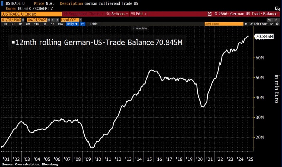 Καυτή είναι η ατζέντα στη μεθαυριανή συνάντηση του Ντοναλντ Τραμπ με τον γερμανο καγκελάριο Φ. Μερτζ στην Ουάσινγκτον. Το μενού τεράστιο και πολυ σημαντικό: Ουκρανία, Μεση Ανατολή αλλά και δασμοί έχουν κεντρική θέση... Το εμπορικό πλεόνασμα της Γερμανίας έναντι των ΗΠΑ (70δις ευρώ) ισούται με το 1,4% του ΑΕΠ της χώρας. Και ο Ντόναλντ δεν θα το αφήσει έτσι...