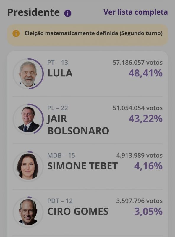 Θρίαμβος Λούλα στις πρώτες εκλογές, στη Βραζιλία... Ο πρώην πρόεδρος που ετοιμάζει "όλική επαναφορά", πήρε 48,41% και είναι πολύ κοντά στην ανάληψη της εξουσίας μετά απο 12 χρόνια προσωπικών δοκιμασιών... (για το θέμα, η στήλη σας είχε ενημέρωσει μήνες πριν!)