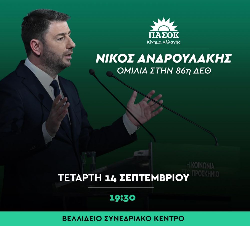 Σήμερα η ομιλία του Νίκου Ανδρουλάκη στην 86η ΔΕΘ. Καυτό το θέμα των υποκλοπών, αλλά η ομιλία του Προέδρου του ΠΑΣΟΚ, θα είναι το πρώτο ουσιαστικό τεστ για τον ίδιο και την πολιτική και οικονομική πρόταση που φέρνει για την χώρα… Αναμένουμε λοιπόν!