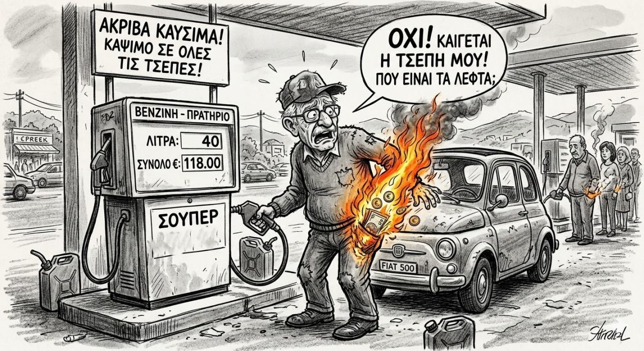 Και ενώ οι διεθνείς τιμές πέφτουν εδώ στην χώρα της … μπανανίας το υγρόν…πυρ συνεχίζει να τσουρουφλάει όλους εμάς, με την Κυβέρνηση λέει, να παρακολουθεί στενά την κατάσταση και όταν χρειαστεί θα παρέμβει… άμεσα. Έχει χάσει την μπάλα δηλαδή, απλά πράγματα, και ήδη στην αγορά λόγω των αυξήσεων στα καύσιμα υπάρχουν νέες αυξήσεις κυρίως στο σούπερ μάρκετ. Τυχεροί τελικά όσοι φρόντισαν και αγόρασαν ηλεκτρικό αυτοκίνητο που πλέον έχουν βγάλει στα…ανοιχτά τους ιδιοκτήτες τους στο πήγαινε έλα...