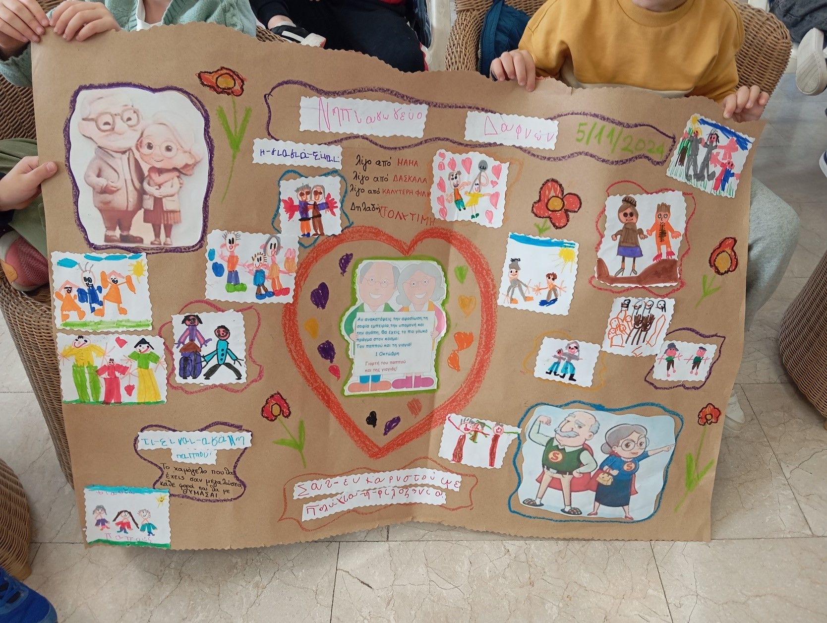 Επίσης, τραγούδησαν «τση γιαγιάς τα παραμύθια» από τους Χαϊνηδες, ένα τραγούδι που άγγιξε τις καρδιές όλων και «ζωντάνεψε» μνήμες των ηλικιωμένων της δομής από τις αξέχαστες, γι’ αυτούς, παραμυθοβραδιές. Στο τέλος της εκδήλωσης και αφού προσφέρθηκε το απαραίτητο κέρασμα, οι μικροί μαθητές πήραν ως αναμνηστικό δώρο της όμορφης συνάντησης από μια κατασκευή που έφτιαξαν οι ίδιοι οι ηλικιωμένοι της ομάδας δημιουργικής απασχόλησης της δομής.