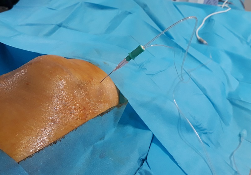 Εικόνα 2. Διαδερμική Τοποθέτηση Ηλεκτροδίου-Βελόνας εντός της κατά γόνυ άρθρωσης.