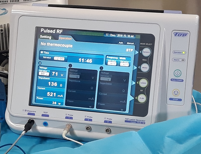 Αυτές οι επεμβάσεις πραγματοποιούνται από Επεμβατικό Ακτινολόγο με τοπική αναισθησία και δεν απαιτεί νοσηλεία. Χρησιμοποιείται απεικονιστική καθοδήγηση για την ακριβή τοποθέτηση τριών ανά γόνατο σημείων-στόχων της θεραπείας πέριξ της άρθρωσης που είναι υπεύθυνα για την αίσθηση του τοπικού πόνου. Εκεί τοποθετούνται διαδοχικά ειδικές βελόνες-ηλεκτρόδια και εφαρμόζεται εστιακά μέσω ειδικής γεννήτριας παραγωγής ραδιοσυχνοτήτων υψηλή θερμοκρασία. Η θεραπεία μπορεί να πραγματοποιηθεί επίσης με τη τοποθέτηση μόλις ενός ηλεκτροδίου-βελόνας εντός της άρθρωσης. Η επέμβαση διαρκεί αναλόγως τη μέθοδο περίπου 15-30 λεπτά και ο ασθενής επανέρχεται άμεσα στις καθημερινές του δραστηριότητες. Εφόσον τηρηθούν οι συνθήκες αντισηψίας η μέθοδος είναι απόλυτα ασφαλής και καλά ανεκτή από τον ασθενή , χωρίς να εμφανιστούν επιπλοκές.