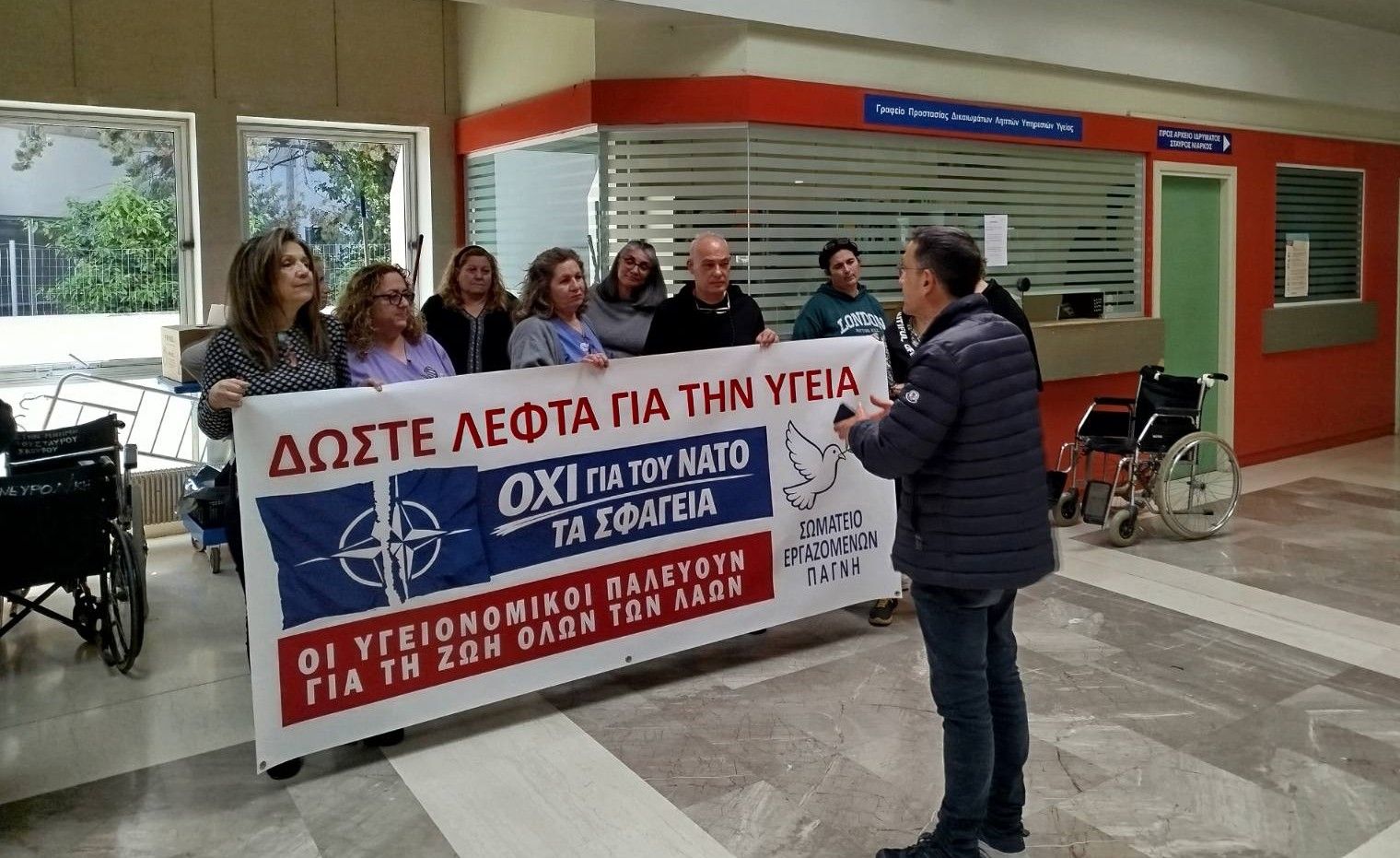 Το Σωματείο Εργαζομένων ΠΑΓΝΗ καλεί τους συναδέλφους εργαζόμενους, αλλά και τους ασθενείς να δυναμώσουν τον αγώνα για αποκλειστικά δημόσια και δωρεάν υγεία, με επαρκή χρηματοδότηση εξ’ ολοκλήρου από τον κρατικό προϋπολογισμό, για μαζικές προσλήψεις μόνιμου προσωπικού σε όλους τους κλάδους και τις ειδικότητες, με μονιμοποίηση των συμβασιούχων συναδέλφων και πλήρη εργασιακά – μισθολογικά- ασφαλιστικά – επιστημονικά δικαιώματα.